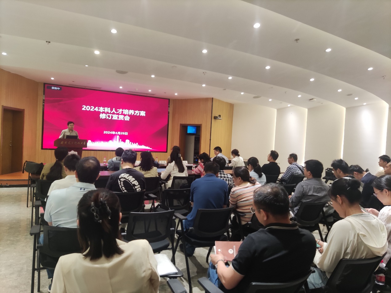 (通讯员 侯晓慧 张亚菲)为持续深化教育教学综合改革,更好地落实教育数智化战略行动,全面提升人才培养质量,学校于近日启动2024本科人才培养方案修订工作。为进一步扎实推进该项学校重点任务落实落地,凝聚思想共识、准确把握内涵,4月26日上午,计算机科学与技术学院、网络与信息安全学院、人工智能学院在南校区会议中心101报告厅联合召开2024本科人才培养方案修订宣贯会暨课程体系建设研讨。会议邀请本科生院计划中心主任兼教务处副处长杨敏、先进材料与纳米科技学院执行院长杨丽教授做主题分享。本科生院质监中心主任兼教务处副处长李亚汉、计划中心教研科科长张希颖和各学院本科教学指导委员会委员、教学督导、专业负责人、课程组负责人及教学管理人员等70余人参加了会议。会议由人工智能学院副院长董伟生教授主持。