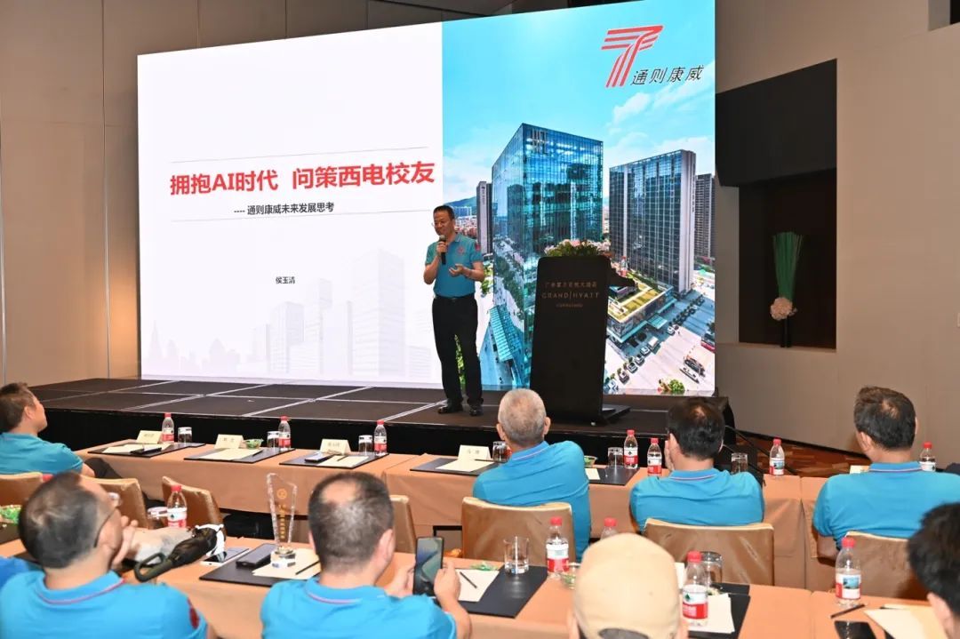 在AI赋能技术论坛上,广州研究院正处级组织员马博介绍了研究院在成果转化方面的实践与发展。广州通则康威科技股份有限公司董事长、80级校友侯玉清、广州研究院谢雪梅教授、蒋明哲副教授做AI主题报告。